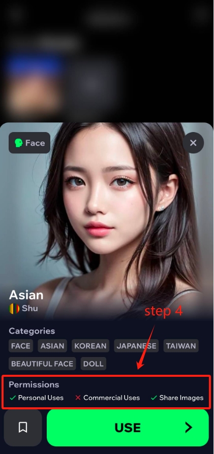 画像を利用する前に、使用する「イージーモデル」のモデルが商用利用可能かどうかを確認してください。確認するには: