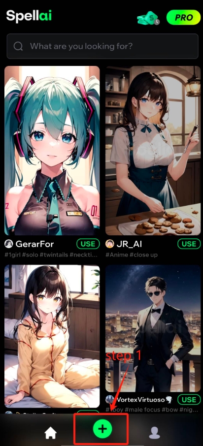 1. ホームページ下部の 「 + 」 ボタンをタップする。